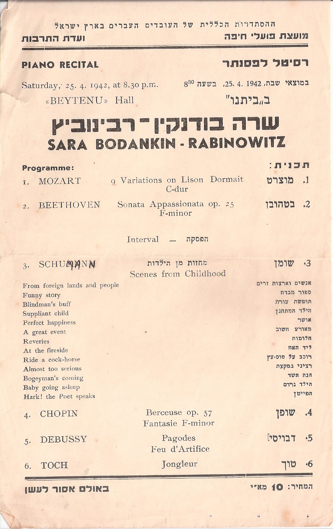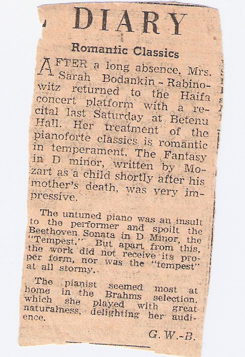 שרה נמנתה על קבוצת המורות לפסנתר שלא החמיצה אף אחת מה-13 התחרויות לפסנתרנים ע"ש רובינשטיין. היא תמיד הזמינה את המעוניינים מבני המשפחה להתלוות אליה לחגיגה הזו, שכה אהבה. בימים אלה מתקיימת התחרות ה- 14 וכולנו מרגישים בחסרונה.