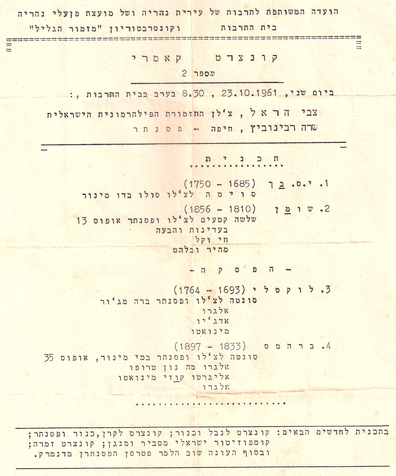 היא הופיעה עם תזמורות "קול ישראל" ותזמורת חיפה, ובסוף שנות ה-80 לחייה הופיעה במספר קונצרטים כסולנית עם "התזמורת הבינדורית" וזכתה להצלחה עצומה.